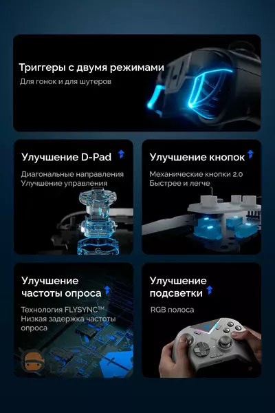 - поддержка зарядной станции Flydigi - удобно хранить, удобно заряжать.